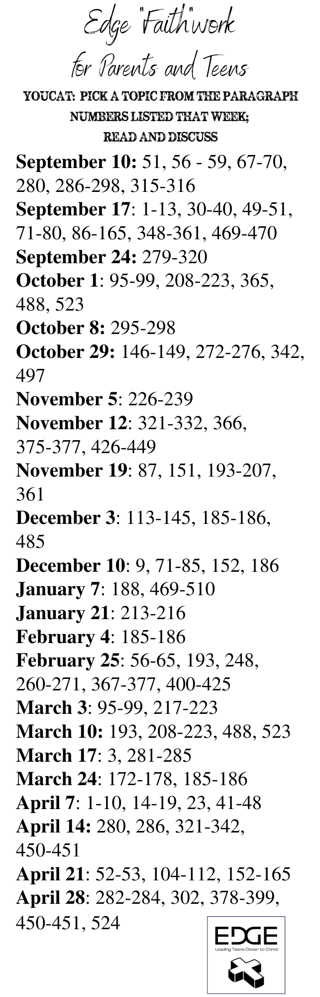 Please help our parish welcome our incoming Catholics in RCIA as they prepare for their Sacraments of Initiation.